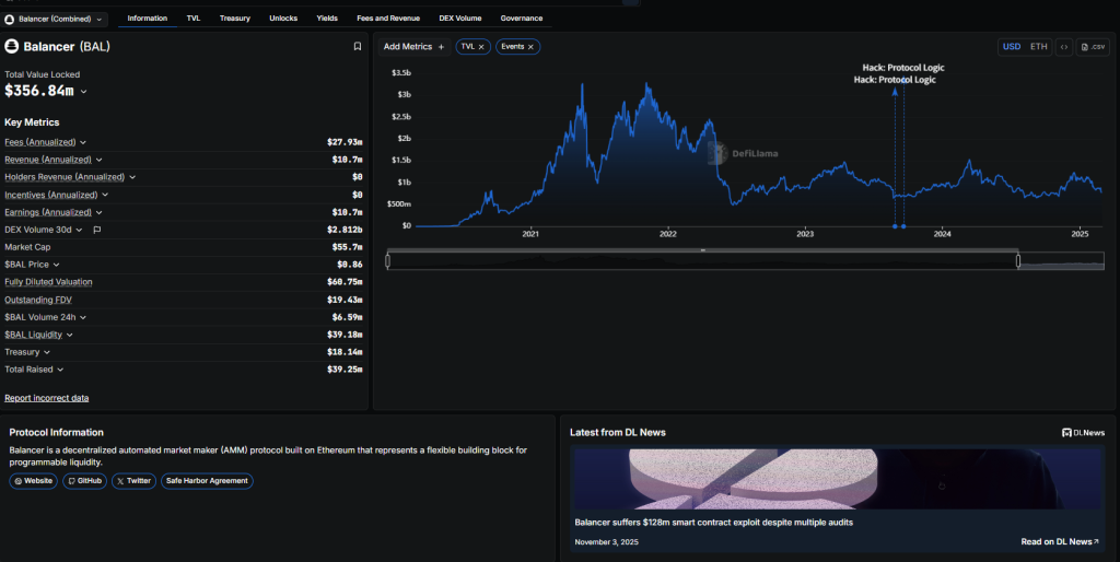 밸런서 TVL이 1B 정도 되는 대형급 DEX 임에도 25.11.03 해킹 공격을 당한 다소 충격적인 사례입니다.